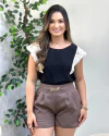Descubra a combinação perfeita entre o tecido Marrant, conhecido por sua durabilidade e conforto, e o charme do tricô nas mangas. Essa blusa oferece um toque sofisticado e um caimento que valoriza a silhueta, ideal para o clima brasileiro.