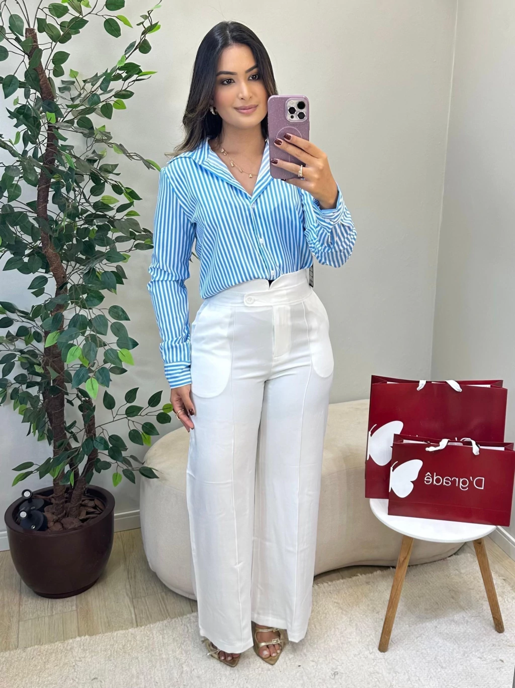 Blusa Kaila cod. 4223 – Elegância com Botões Frontais e Estampa Listrada
