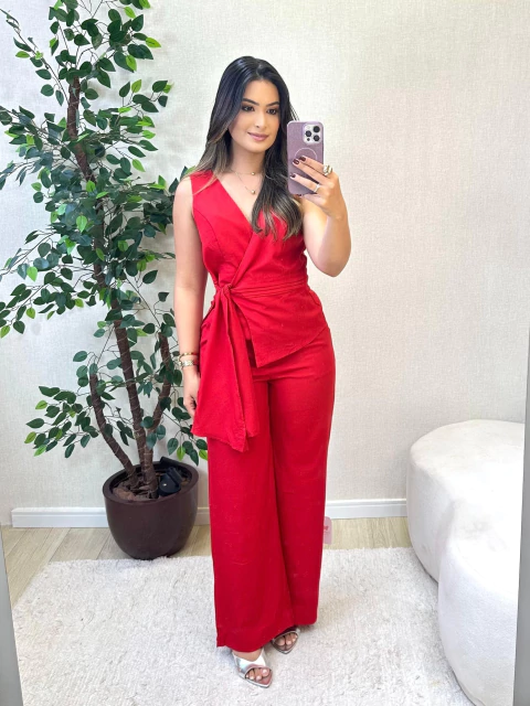Conheça o Conjunto Cleane, composto por blusa transpassada com decote V e calça, perfeito para quem valoriza elegância e praticidade. Confeccionado com tecido de alta qualidade, oferece caimento confortável e modelagem que valoriza a silhueta feminina.