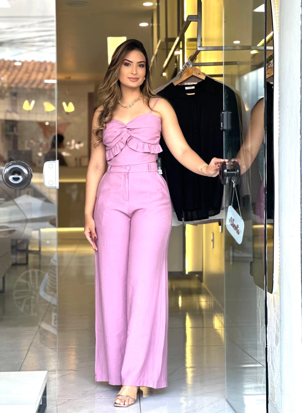 Combine o Conjunto de Calça Pantalona com Cropped de Alça com sandálias de salto para um visual sofisticado ou com tênis para uma produção mais descontraída. Adicione acessórios que reflitam seu estilo e esteja pronta para brilhar!