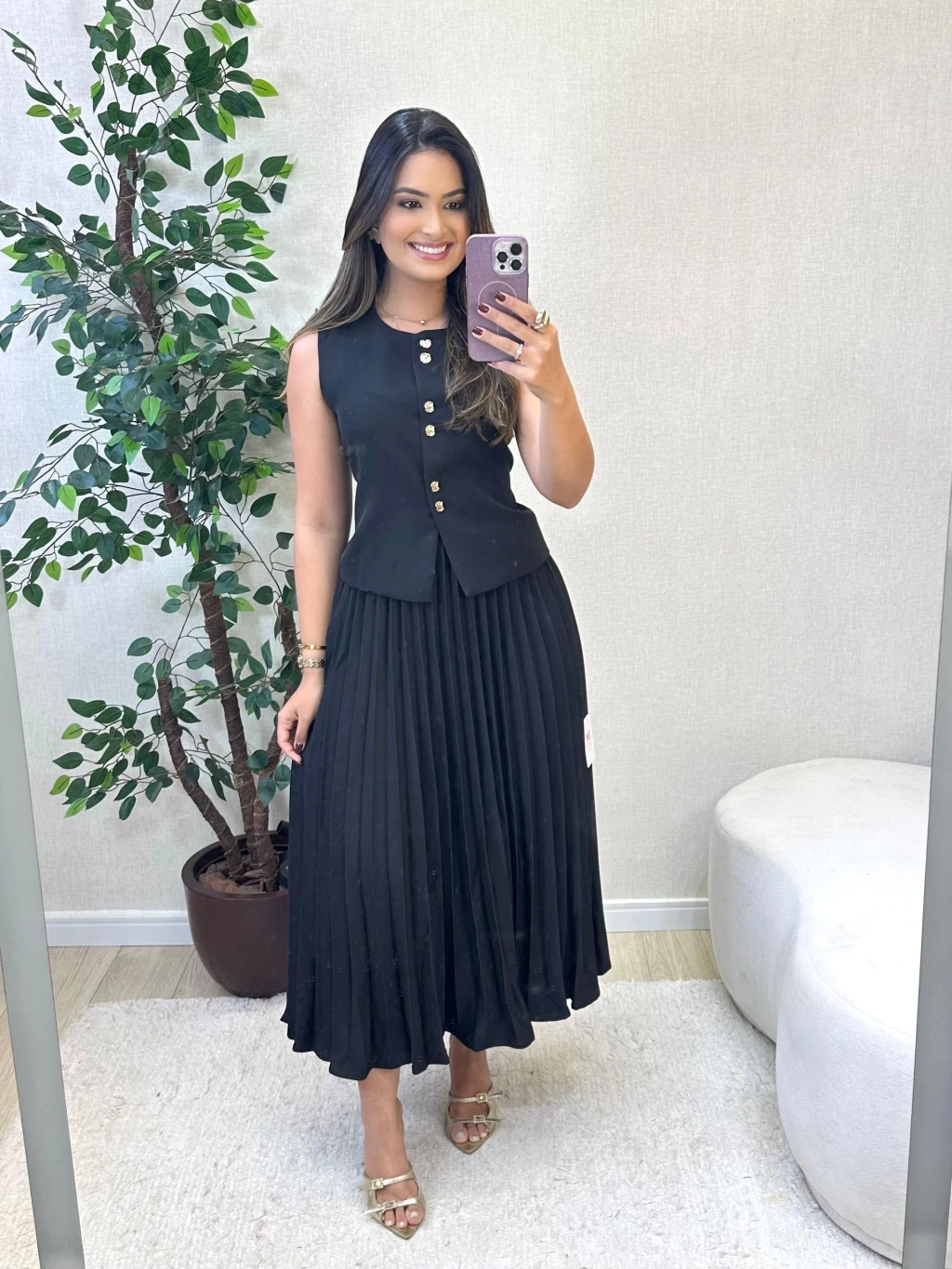 Conjunto Rayane cod. 4272: Elegância e Praticidade em um Só Look Conheça o Conjunto Rayane, composto por saia plissada e blusa regata com botões dourados que adicionam um toque sofisticado. Ideal para ocasiões casuais ou eventos mais elaborados, o conjunto une conforto e estilo, perfeito para o clima brasileiro. Aposte nessa combinação versátil para renovar seu guarda-roupa com charme e leveza.