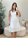 Descubra o charme do Vestido curto de alça confeccionado em tecido bordado de alta qualidade. Seu design leve e sofisticado proporciona conforto e estilo para dias quentes, valorizando a silhueta com delicadeza.